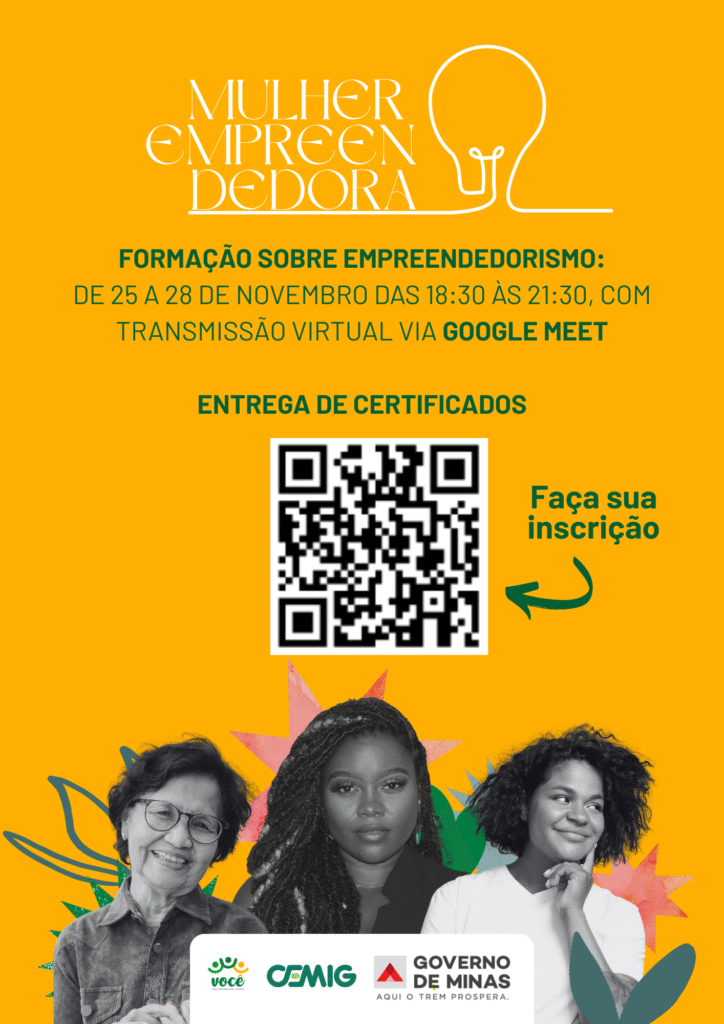 A Cemig, por meio do programa Você – Voluntariado Cemig, anuncia a nova edição do projeto “Mulher Empreendedora”, iniciativa voltada ao fortalecimento da autonomia feminina e à promoção da transformação social. A formação tem como principal objetivo possibilitar que mulheres de várias regiões de Minas Gerais sejam capacitadas para a gestão dos próprios negócios, de maneira a contribuir para a criação de oportunidades e geração de renda. As inscrições estão abertas até o próximo dia 21 de novembro e podem ser realizadas por um formulário online disponível no portal cemig.com.br.